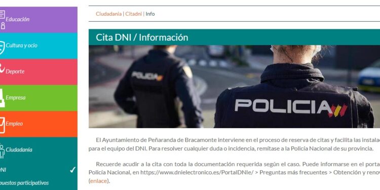 El Ayuntamiento de Peñaranda sigue dotando de contenido a la nueva plataforma municipal y en este caso facilita ya a los ciudadanos la reserva online para la obtención y renovación del Documento Nacional de Identidad (DNI). A través de la mencionada plataforma municipal trámites.bracamonte.es, el Ayuntamiento ayuda a coordinar este servicio de la Policía Nacional, interviene en el proceso de reserva de citas y facilita las instalaciones para el equipo que se desplaza periódicamente hasta la localidad peñarandina y evita a los usuarios viajes hasta la capital salmantina.