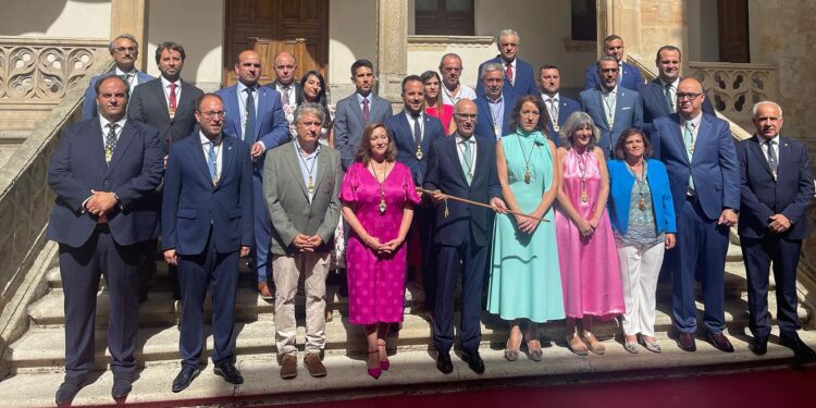 El patio del Palacio de la Salina, en la capital salmantina, ha acogido esta mañana la constitución de la nueva Corporación Provincial para la legislatura 2023-2027 que vuelve a estar presidida por Javier Iglesias y de la que también forman parte Carmen Ávila (PSOE-alcaldesa de Peñaranda) y Juan Carlos Zaballos (PP-Alcalde de Mancera de Abajo) como diputados provinciales por la comarca de Peñaranda.