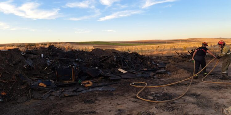 Bomberos del parque comarcal de Peñaranda se han desplazado en la tarde de hoy sábado hasta Macotera para sofocar el incendio que se ha originado en una escombrera de la localidad pasadas las 20:10 horas. Los efectivos han trabajado durante más de dos horas para apagar las llamas que han calcinado restos y enseres acumulados en la zona.