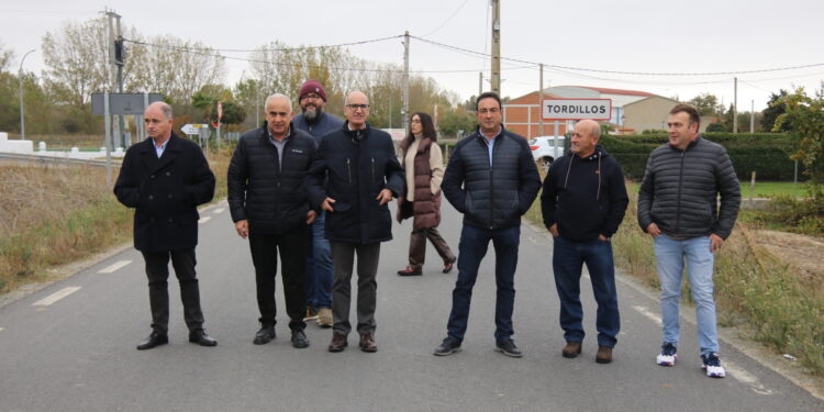 El presidente de la Diputación, Javier Iglesias, junto al diputado de carreteras, Jesús María Ortiz, y al diputado de zona, Juan Carlos Zaballos, ha visitado hoy la localidad de Tordillos, concretamente las obras de ensanche y refuerzo del firme que se han llevado a cabo en la carretera de acceso al municipio desde la SA-114. El alcalde, Ángel Luis Alonso, y varios miembros de la Corporación Local también han participado en dicha visita.