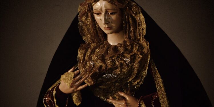 Se trata en este caso de la tercera imagen peñarandina que ya luce esta indumentaria de luto tras Nuestra Señora de la Soledad, vestida también por José Ángel Nava, y de Nuestra Señora de las Lágrimas.