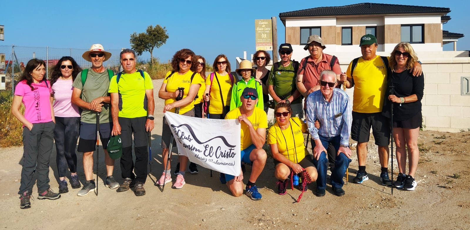 El club de senderismo Camino el Cristo, de Alaraz, sigue cumpliendo objetivos en su calendario anual de actividades y hoy, domingo, ha realizado la ruta de Santa Lucía entre las localidades de Almenara y Juzbado, en la provincia salmantina. Se trata de una ruta fácil que atraviesa campos de cultivo y que en un tramo va paralela al canal de Zorita. El itinerario forma parte de las Sendas del Tormes-Cañedo y se inauguró en el año 2006. A la llegada a Juzbado, el grupo ha podido disfrutar de unas bonitas vistas de la ribera del Tormes desde la Peña del Castillo. Tras la ruta, los senderistas también han tenido oportunidad de visitar el bosque del arte emboscado de la Fundación Tormes-EB.
