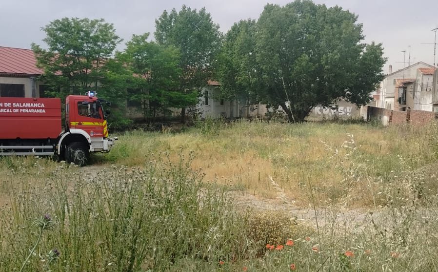 Una dotación del parque de Bomberos y agentes de la Policía Local se han desplazado hasta un solar junto a la carretera de Medina, en Peñaranda, donde se ha producido un conato de incendio que, por suerte, se ha controlado rápidamente. Dicho solar presenta una gran cantidad de maleza acumulada a pesar de que la ordenanza municipal obliga a mantener estos espacios limpios y más aún de cara a la temporada veraniega por el peligro de incendio.