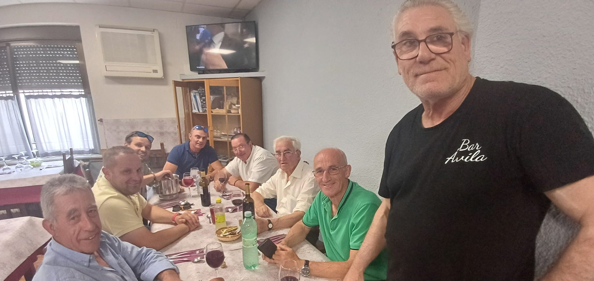 Este grupo de vecinos y amigos de Nava de Sotrobal han decidido hoy, viernes, celebrar la festividad de San Antonio de Padua con una animada comida de confraternidad en el bar Ávila, de Ventosa del Río Almar, donde han sido recibidos por Amador.