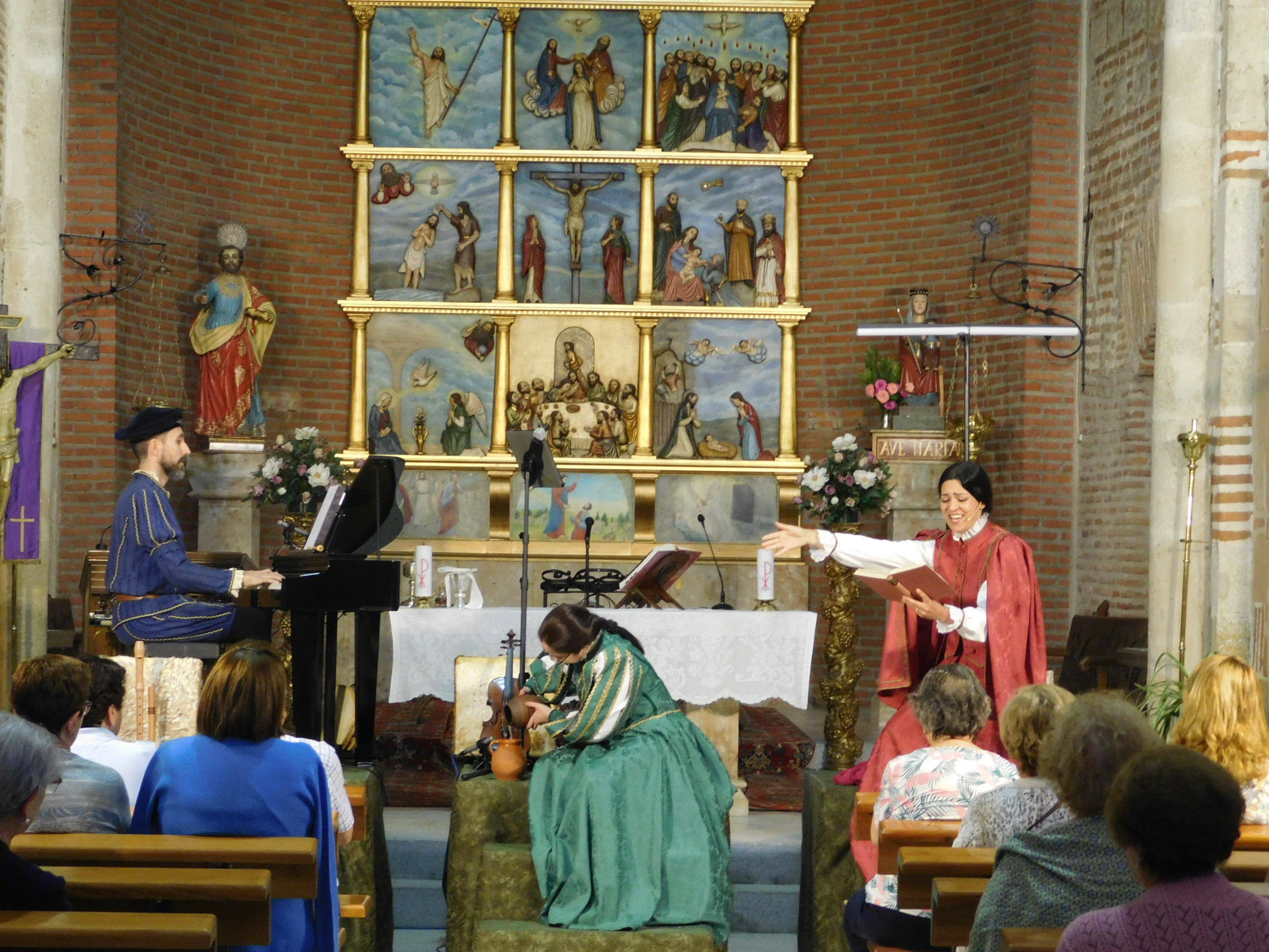 Una tarde de viernes distinta para quienes decidieron acercarse a esta imponente iglesia mudéjar a dejarse envolver por la creación artística y la profesionalidad de la actriz y cantante Guadalupe Lancho y los músicos Jenny Leyva y Juan Francisco Vicente.