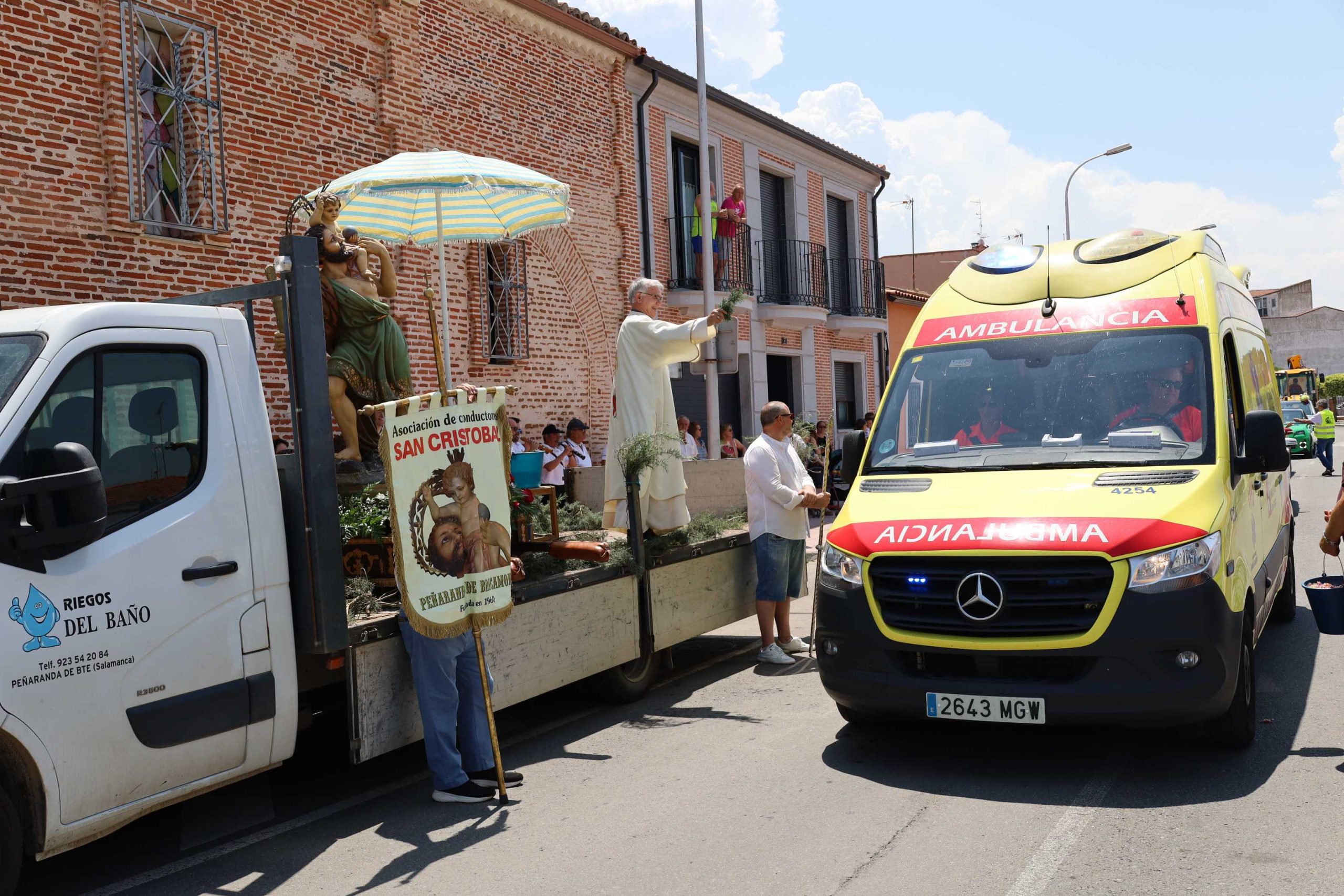 Los conductores celebran su fiesta en Peñaranda con la misa, procesión y bendición de vehículos presidida por San Cristóbal