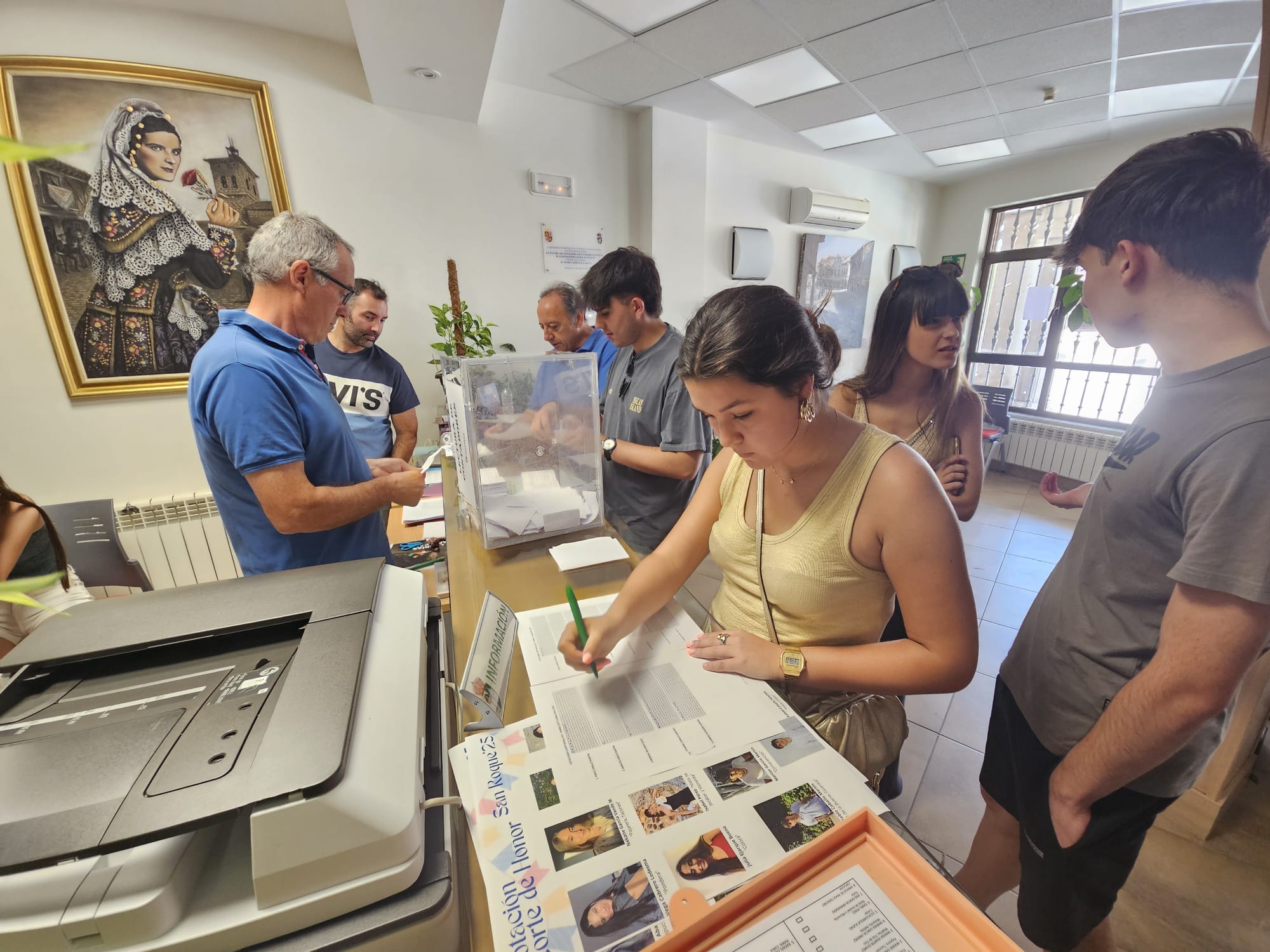 Desde las 13:00 a las 15:30 horas las puertas del Ayuntamiento de Macotera han estado abiertas para recibir a decenas de vecinos y vecinas que han querido participar en la elección de la corte de honor de las fiestas de San Roque. Cerrada ya la urna, el alcalde, Benjamín Madrid, junto al primer teniente alcalde, Jesús Bautista y al concejal Marcelino Sánchez, y a los propios candidatos, chicos y chicas, ha supervisado el recuento de papeletas. Hace escasos minutos se ha dado a conocer el resultado final por parte del Ayuntamiento y éstos jóvenes serán finalmente los grandes protagonistas con su esperada proclamación oficial prevista para el 14 de agosto.
