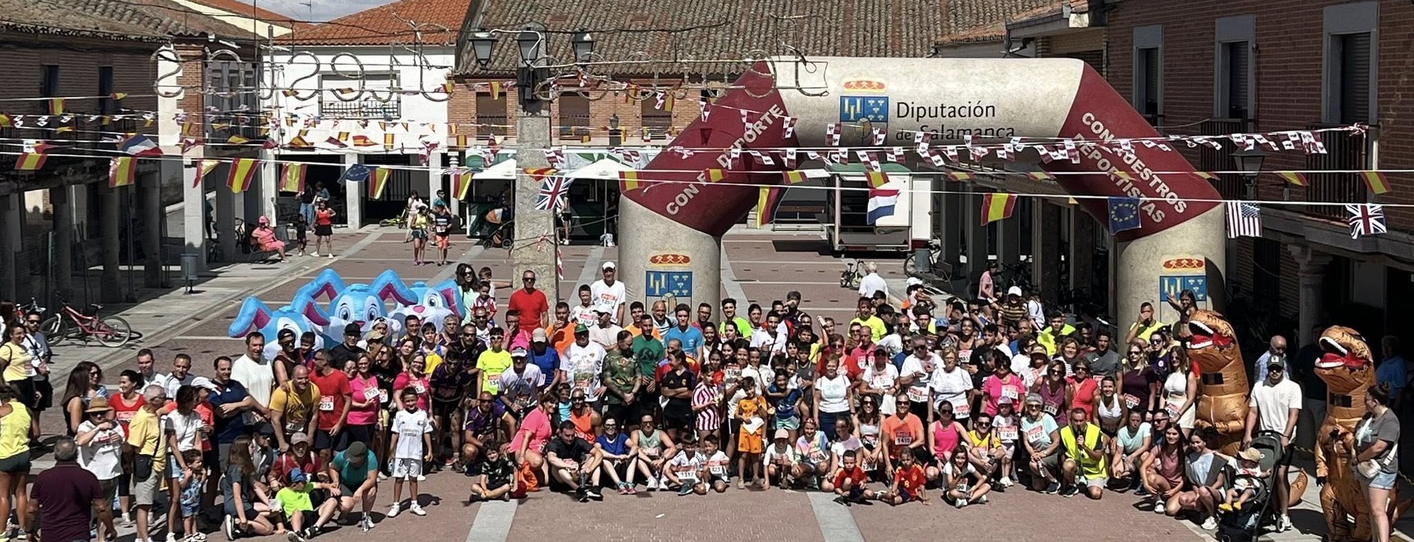 Santiago de la Puebla vive ya el ambiente de sus fiestas patronales en honor de Santiago Apóstol y en la mañana de hoy, sábado, ha sido escenario de la IX edición de la Quedada Running y marcha ciclista solidaria en la que los 250 participantes han canjeado sus dorsales a cambio de un kilo de alimentos no perecederos que se destinarán al Banco de Alimentos. La programación de hoy continuará esta noche con una gran parrillada en la plaza y un bingo organizado por los jóvenes del pueblo. A las 00:00 horas, la discomóvil Zarabanda animará la primera verbena festiva.