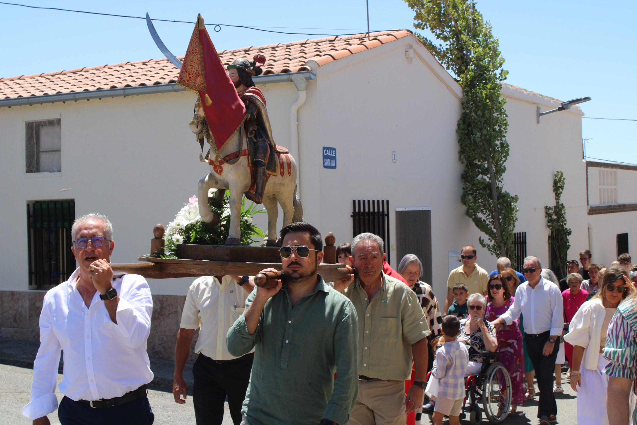 Acompañados por la charanga El Tinglao y por numerosos vecinos, la imagen del santo ha recorrido las calles del municipio. En la plaza, como es tradición, no faltaron las jotas en honor a Santiago Apóstol. Alcaldes y concejales de Villoria, Babilafuente y Palaciosrubios, han acompañado a la Corporación Municipal presidida por Manoli Noreña.