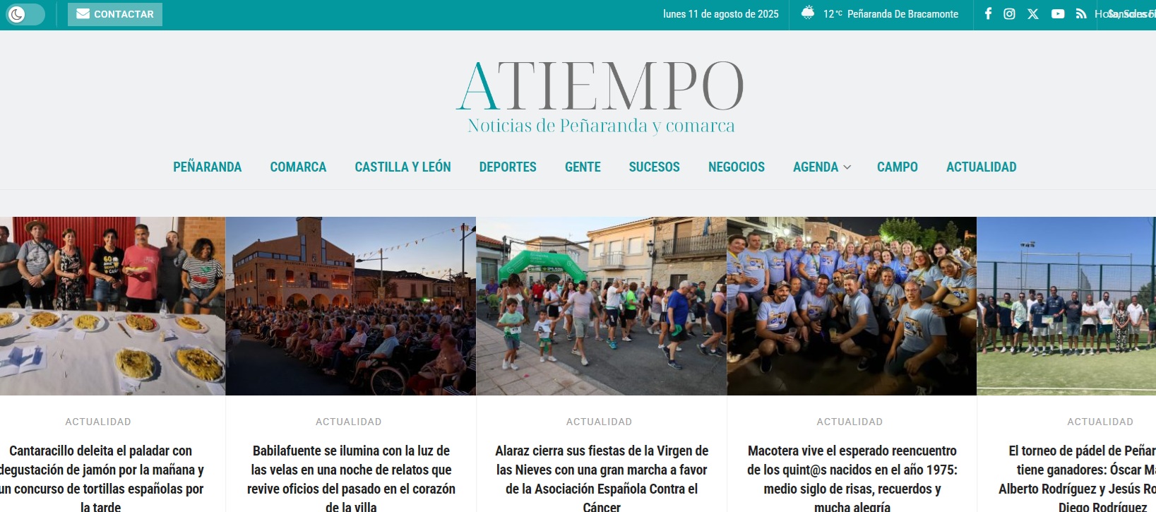 Todo ello se ha ido asentando y consolidando a base del trabajo diario, de ir dando pequeños pasos hasta convertir A TIEMPO en un referente informativo de Peñaranda y su comarca, con sus aciertos y también, por qué no decirlo, con sus errores; con las miles de personas que nos siguen y nos animan a seguir en este camino y con los detractores, por suerte unos pocos, que al menospreciarnos sólo consiguen el efecto de intentar tapar el sol con un dedo.