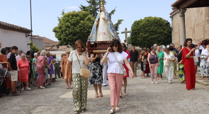 Cantaracillo ha acompañado hoy a la Virgen de la Asunción en los actos religiosos organizados en su honor como han sido la eucaristía solemne cantada por el coro La Buena Moza y la procesión. La Asunción cantaracillense ha sido, además, la más madrugadora en recorrer su pueblo en la comarca peñarandina, todo ello con una destacada presencia de vecinos y también de los que cada año vuelven al municipio en estas fechas estivales. Tras completar el itinerario marcado por las calles más céntricas de la localidad, la Virgen ha regresado al templo. Acto seguido ha tenido lugar un vino de honor y esta tarde seguirá la programación festiva con un parque infantil en la plaza de la Constitución y un mercadillo solidario a beneficio de la restauración del patrimonio local.