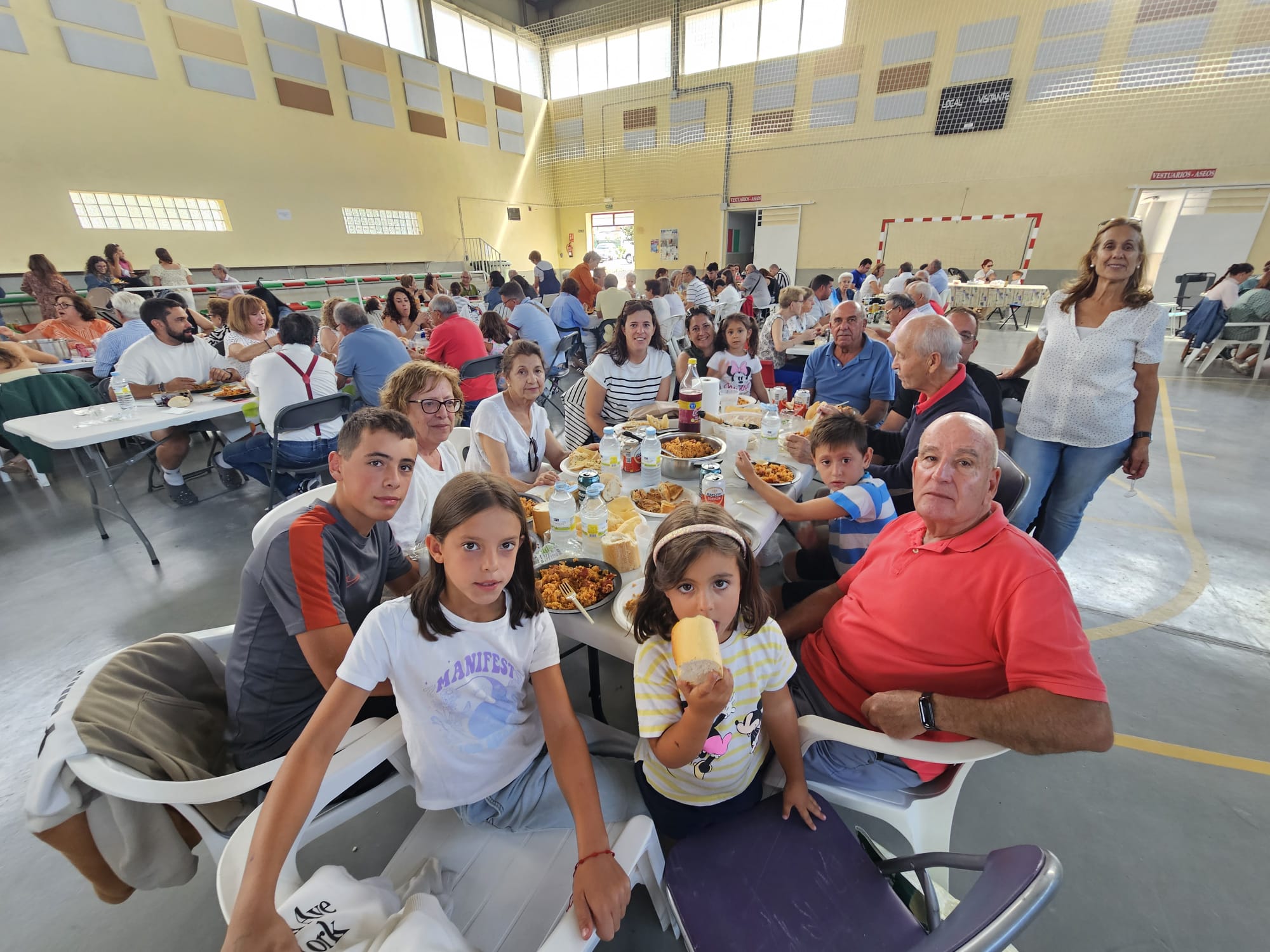 Las temperaturas, más bien fresquitas, de este último día de agosto y la amenaza de lluvia de esta mañana han obligado a trasladar la comida popular de las fiestas del Hinojal al pabellón cubierto en lugar de celebrarse en el parque, como es habitual en estas fechas. La organización ha repartido unas 600 raciones de arroz a la zamorana, acompañadas de pan y bebida, y la mayor parte de los comensales han optado por quedarse en el recinto deportivo aunque otros han recogido sus platos para comer en casa. Con esta comida de confraternidad se han cerrado las fiestas en honor de Nuestra Señora del Hinojal que se han caracterizado por una gran participación en todas las actividades programadas por el Ayuntamiento que encabeza Flori del Castillo.