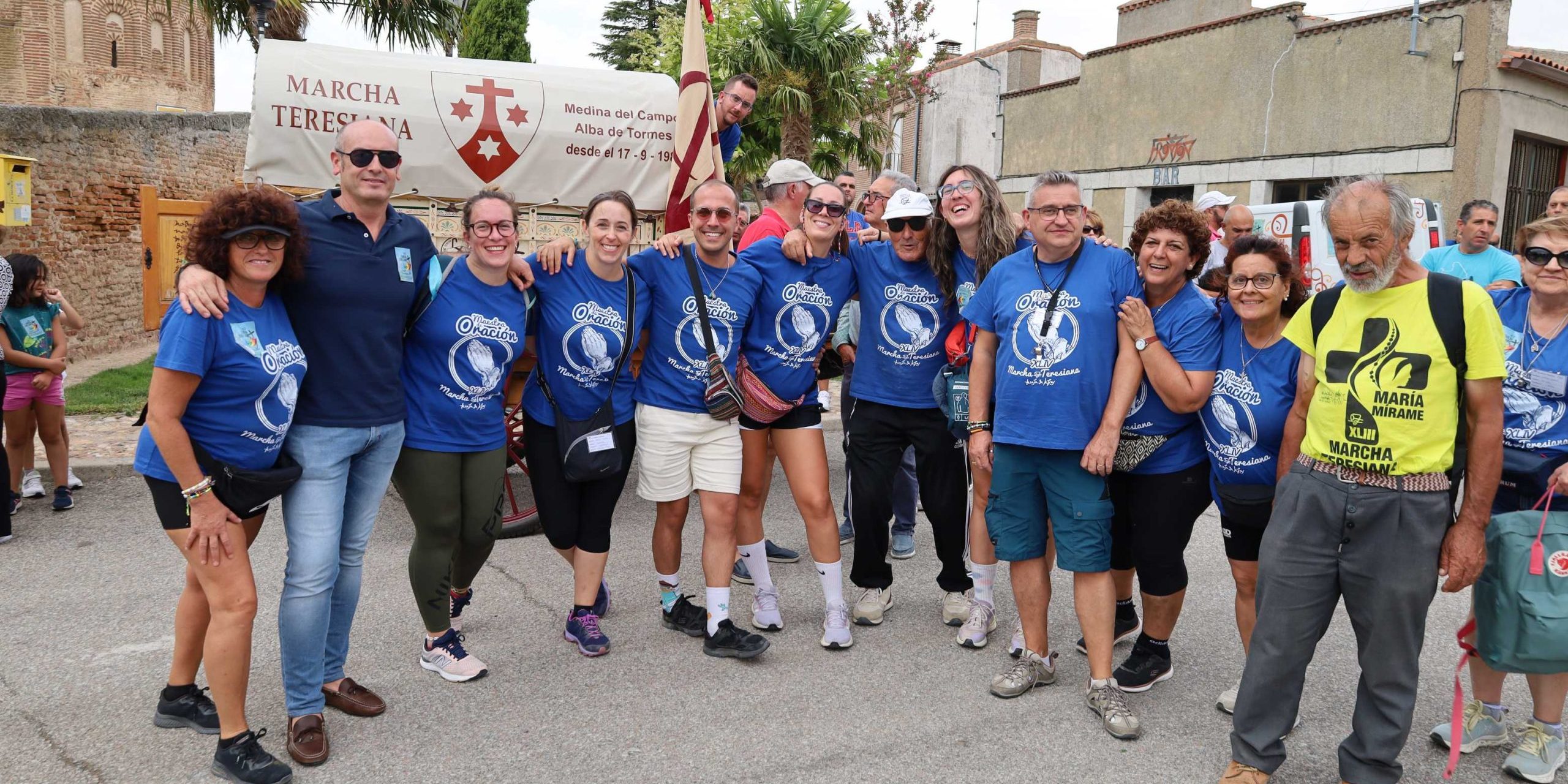 La Marcha Teresiana sigue su recorrido desde Medina del Campo hasta Alba de Tormes y hoy, viernes, ha atravesado parte de la comarca peñarandina en una jornada que ha comenzado en Palaciosrubios y ha continuado en Zorita de la Frontera con la celebración de la Palabra. A mediodía, los peregrinos han llegado a Aldeaseca de la Frontera en cuya iglesia ha tenido lugar la celebración de la reconciliación antes de la comida. Tras un breve descanso, a las 17:30 horas, en la plaza ha dado comienzo la comunión de los higos en recuerdo del único alimento que ingirió Santa Teresa de Jesús, ya muy enferma, a su paso por estas tierras. Tras la entrega del bastón de mando por parte del alcalde, Luis Romero, que ha querido compartir con peregrinos y vecinos este momento, la oración comunitaria ha servido para pedir por la paz en el mundo y contra el hambre. «Adiós con el corazón» ha sido la canción que ha marcado, un año más, el momento de la despedida y numerosos vecinos han querido acompañar a la santa hasta la salida del pueblo rumbo ya a Nava de Sotrobal donde esta noche habrá un festival de peregrinos y se pernoctará antes de afrontar mañana la última etapa hasta Alba de Tormes.