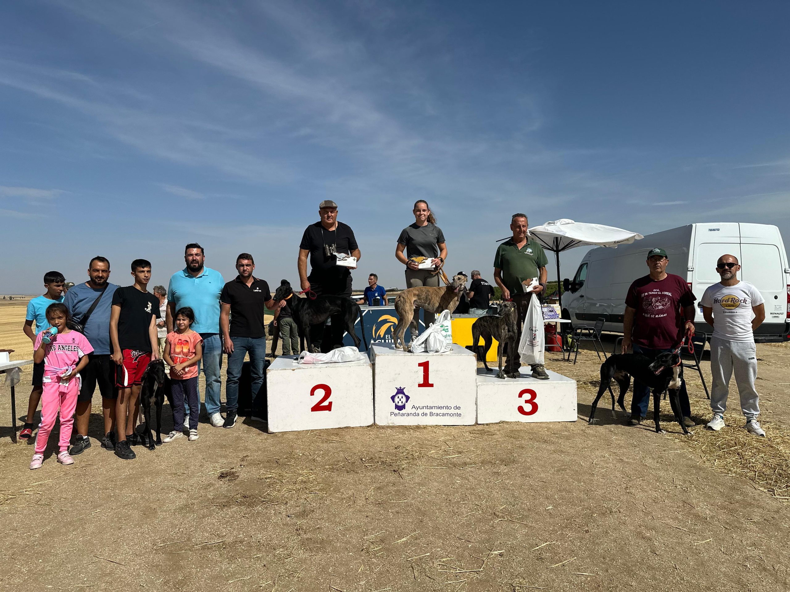 La II edición de la carrera de galgos «Ciudad de Peñaranda», disputada esta mañana en el término municipal de Cantaracillo, ha abierto el prólogo de las fiestas patronales de San Miguel Arcángel con un gran ambiente y un destacado éxito al reunir a más de medio centenar de inscritos. El buen tiempo ha acompañado las carreras de 1.300 metros al regate que han seguido de cerca numerosos aficionados de la zona. La bailaora flamenca Arantxa Pérez ha amenizado la espera hasta la entrega de premios que ha tenido lugar a mediodía y que ha contado con el segundo teniente alcalde de Peñaranda, Antonio Poveda y el concejal de Deportes, Pedro Pérez.