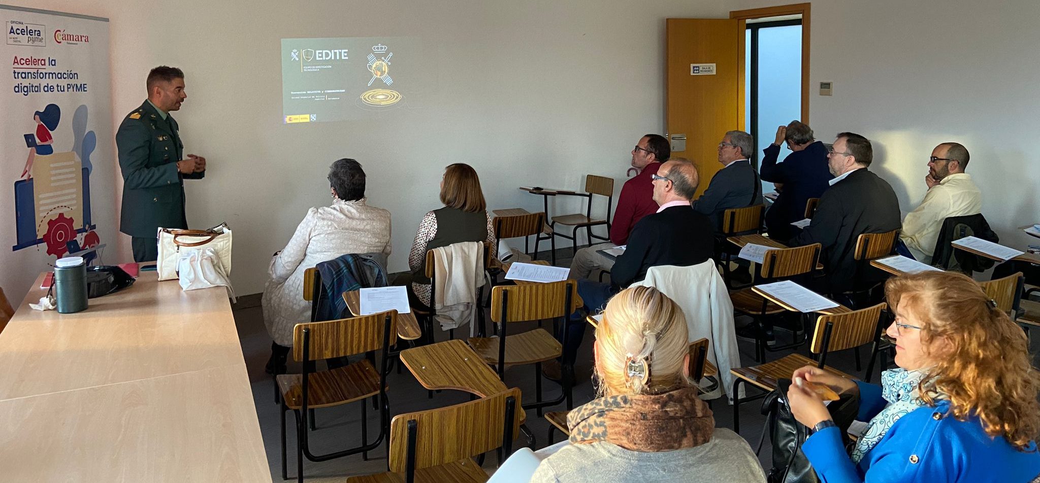 Roberto Fernández, sargento del equipo EDITE (Equipo de Investigación Tecnológica) de la Guardia Civil, ha sido el encargado de dirigir esta mañana en Peñaranda una jornada sobre cómo las empresas deben estar preparadas frente a los ciberataques. La actividad ha dado comienzo a las 09:00 horas, en el vivero de empresas Innova (plaza de la Constitución), y ha estado organizada por la Oficina Acelera Pyme de la Cámara de Comercio de Salamanca.