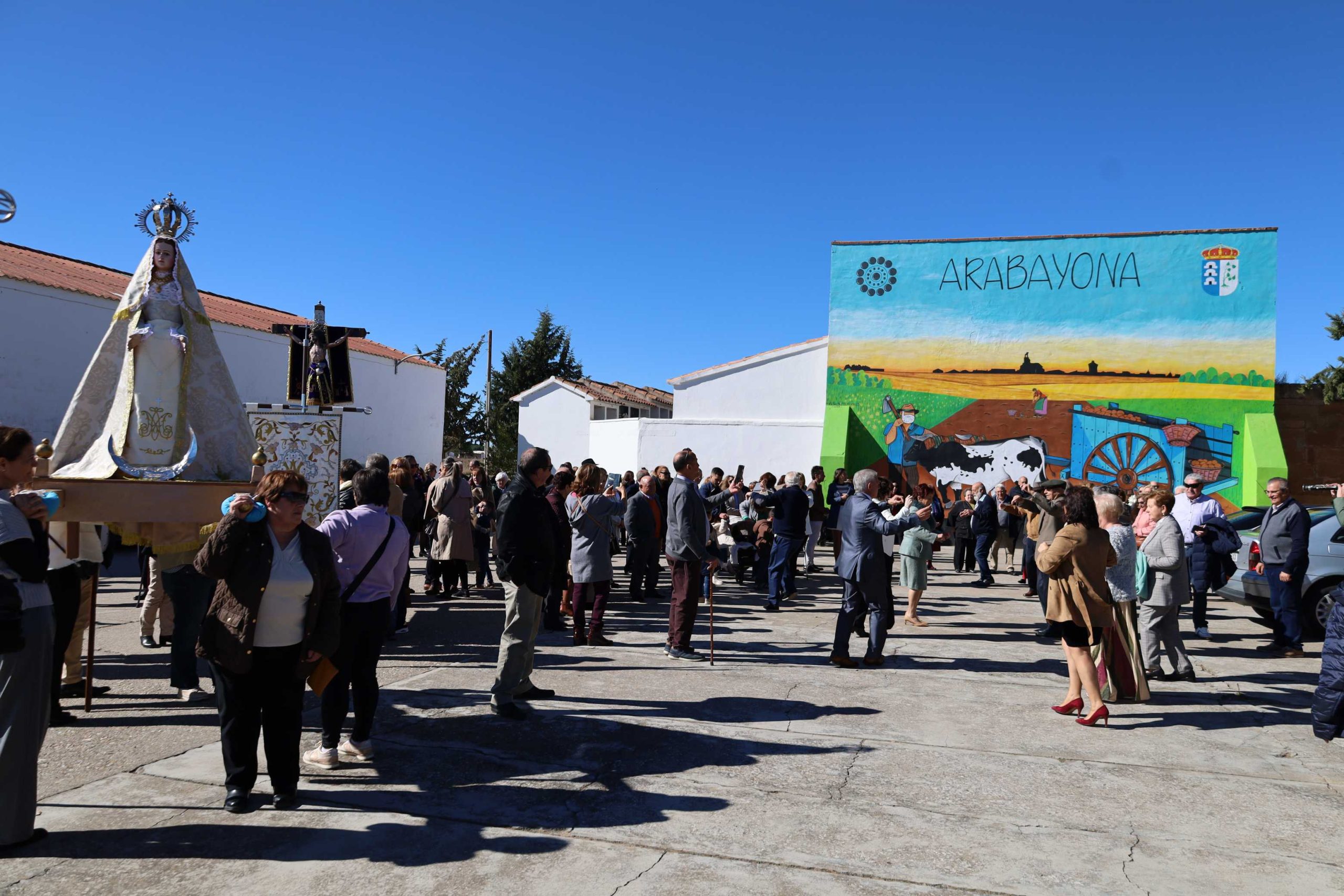 Segunda jornada del triduo religioso en Arabayona de Mógica que ha vuelto a congregar a los fieles en la ermita del Santo Cristo de Hornillos para participar en la misa a las 12:30 horas. A continuación, ha tenido lugar la procesión encabezada por el grupo de dulzaineros de Mariano Díaz y que ha recorrido hoy, lunes, el entorno del cementerio. Frente a la pared del antiguo frontón y en la propia explanada de la ermita no han faltado los bailes antes de que las imágenes del Cristo y la Virgen hayan vuelto al interior donde también ha permanecido la talla original del crucificado recibiendo, también, numerosas muestras de fervor.