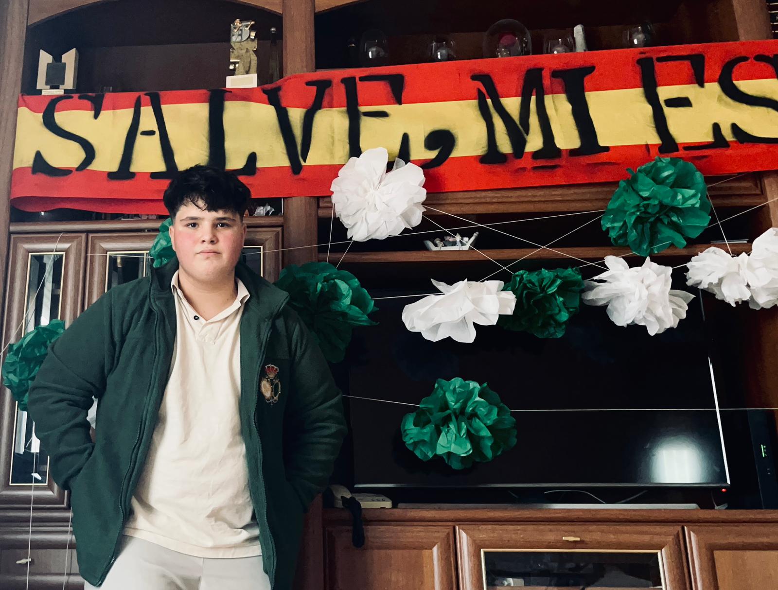 -Me inspiré en la decoración que pude ver personalmente durante la misión de la Esperanza de Triana en las calles de Sevilla. Para las flores utilicé papel de seda blanco, que representa la pureza de María, y verde, el color de la Esperanza. En cuanto a la bandera, compré la tela y la personalicé pintando en spray la frase ‘Salve, mi Esperanza’, la marcha dedicada a ella. Además, incorporé otros adornos ya elaborados que fui comprando y que escogí para que encajaran bien con todo el conjunto.