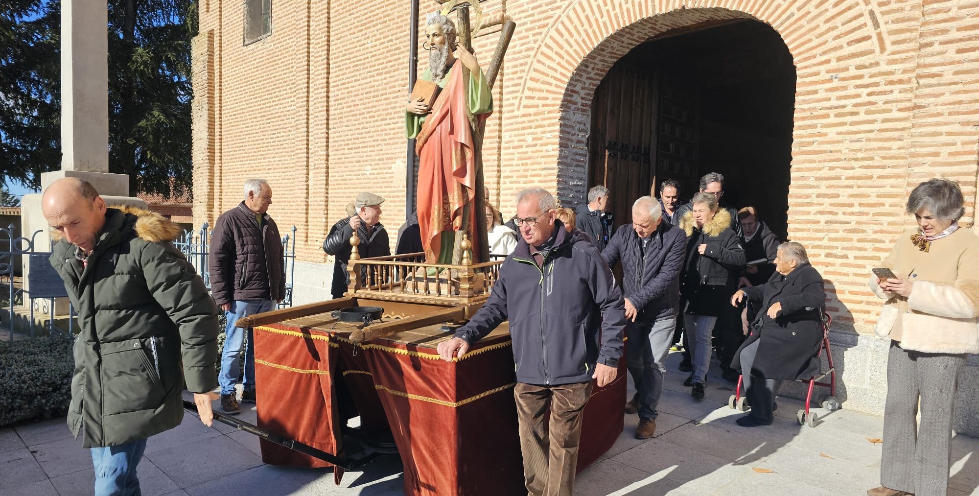 Palaciosrubios despide hoy, domingo, sus fiestas en honor de San Andrés, dedicada tradicionalmente a los quint@s aunque la falta de jóvenes ha hecho que los mayores tomen el testigo y en esta jornada son ahora los protagonistas. Tras la misa dominical oficiada por el párroco Wilton Araújo, la imagen de San Andrés ha salido a la calle en un paso con ruedas que ha facilitado la breve procesión hasta la plaza para regresar a la parroquia.