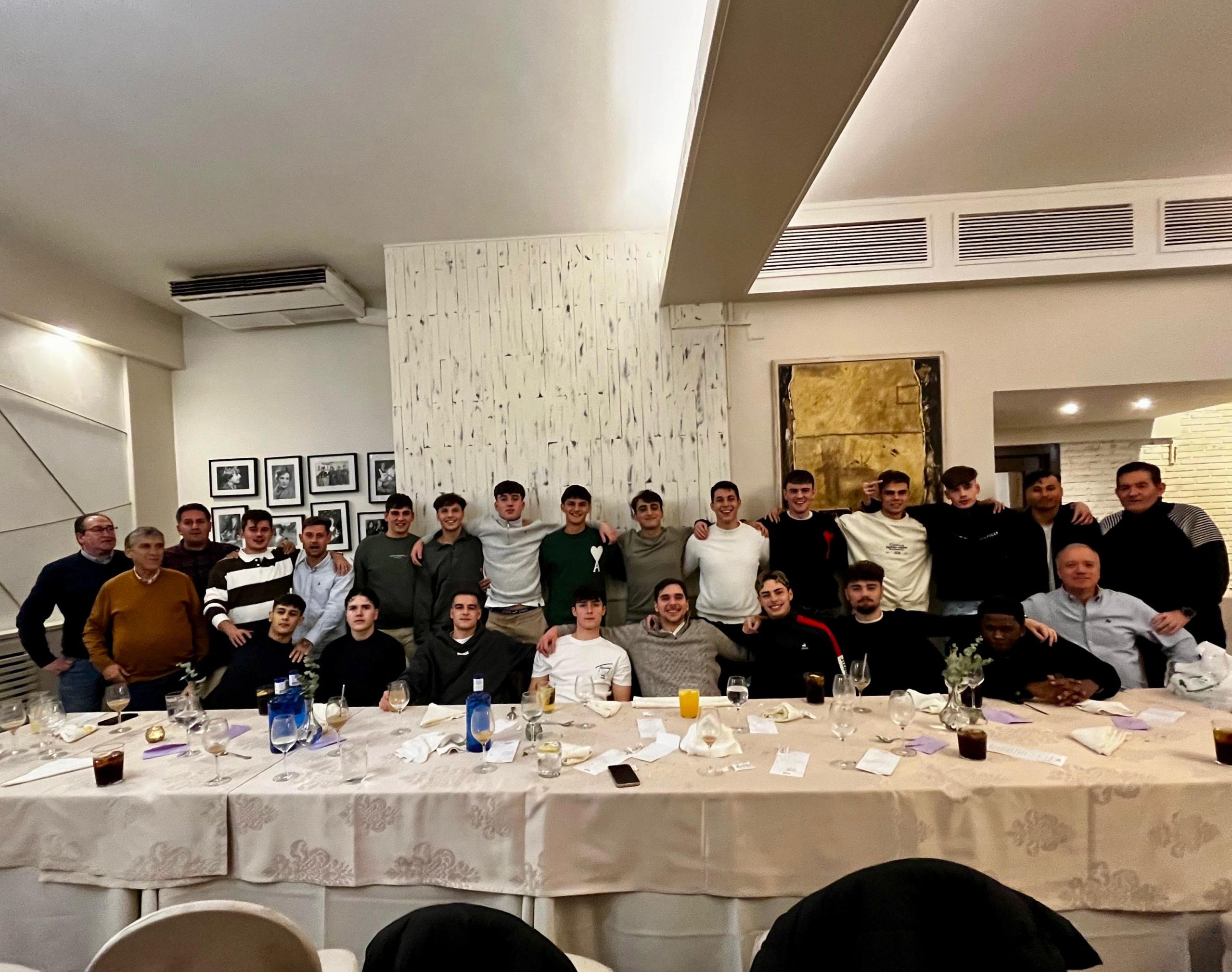 El club deportivo Peñaranda vive ya intensamente el prólogo de las fiestas navideñas y hace unos días reunió a cuerpo técnico, directivos y presidente en una animada merienda que celebró en Los Álamos Gastrolab. Ayer, sábado, el primer equipo del Peñaranda se reunió en el restaurante Las Cabañas para celebrar una cena de Navidad en la que se aprovechó, también, la ocasión para felicitar a su entrenador, Pepe Crespo, por su cumpleaños.