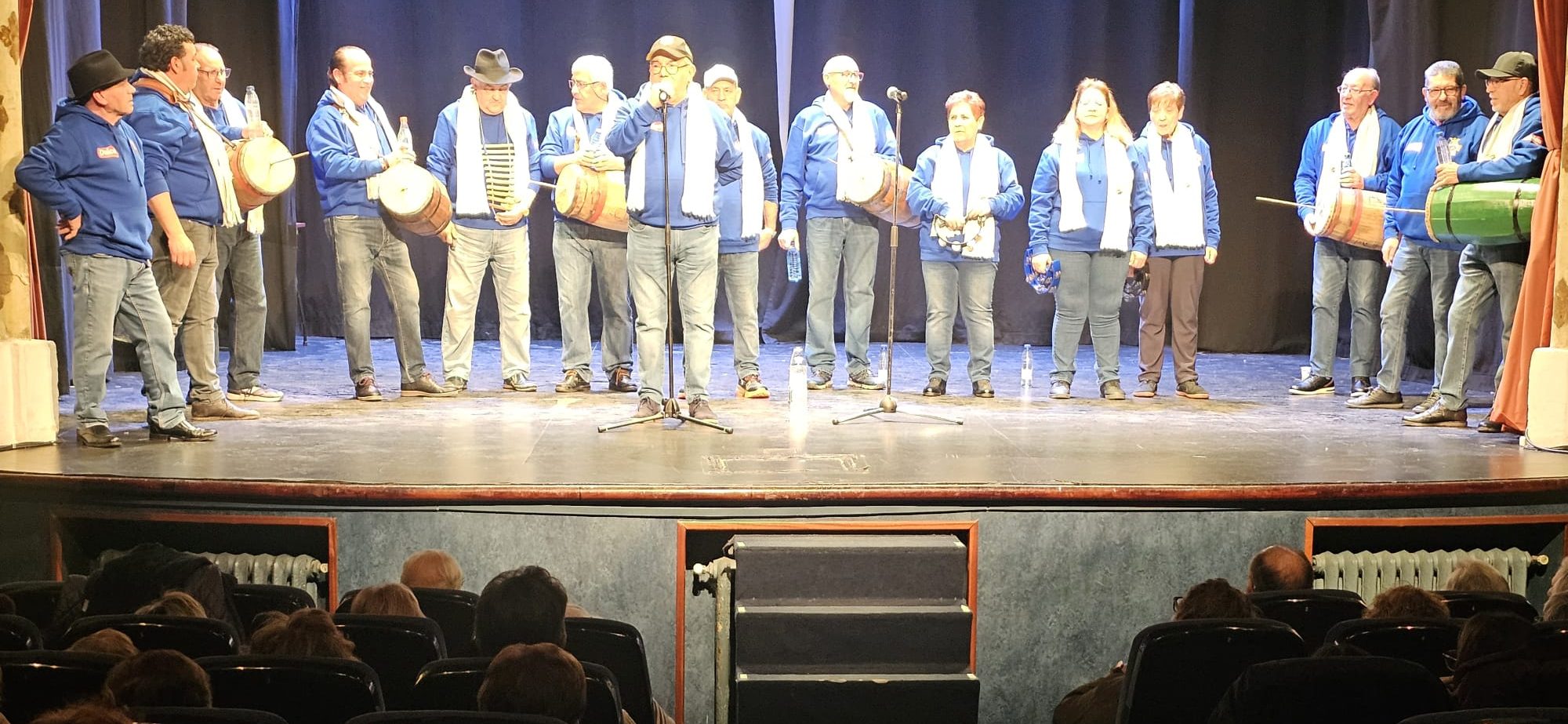La comparsa peñarandina no puede faltar en las navidades y hoy ha tenido lugar el siempre esperado reencuentro con su público más fiel que, año tras año, llena el Calderón para cantar y rememorar los emblemáticos temas del cancionero local. La agrupación que dirige Miguel Alfayate ha abierto su actuación con «El reloj», contando la historia de Tabi culpable de no darle cuerda y que un forastero tuviera que esperar más de media hora en la estación para coger el tren. Ésta y otras anécdotas de la vida y personajes en la Peñaranda de hace décadas, recogidas por las antiguas comparsas y que sobreviven en la actual han vuelto a hacer las delicias de los asistentes. Tampoco han faltado «Eres Peñaranda», convertida ya en el himno de la localidad, ni los villancicos propios de estas fechas. El público, a su llegada al teatro, también ha recibido un pequeño cuadernillo impreso con varias de las letras más conocidas de la comparsa.