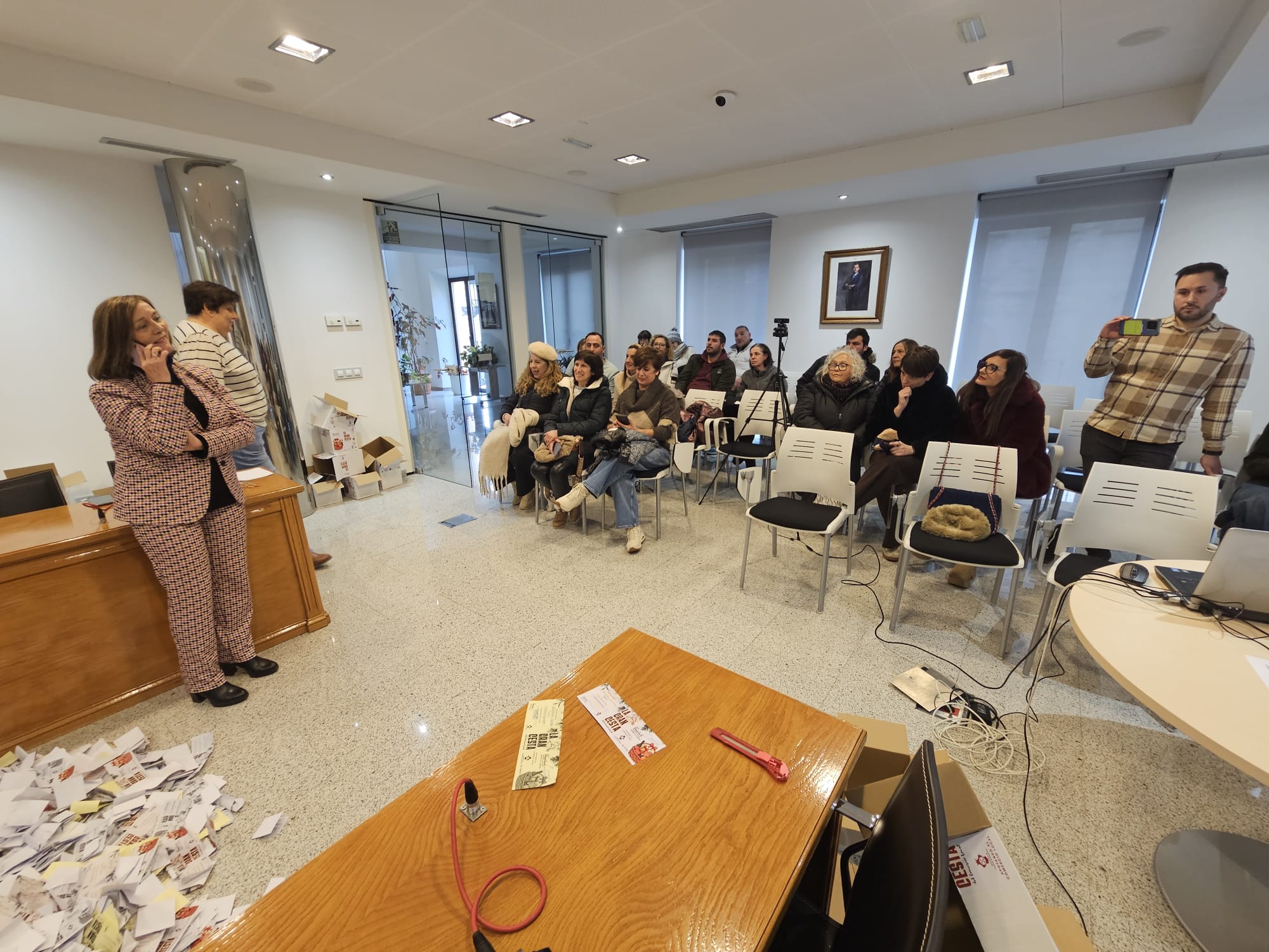 Finalizada ya la campaña navideña, el salón de actos del Ayuntamiento de Peñaranda ha acogido esta mediodía el sorteo de la Gran Cesta de Navidad del Comercio Local a la que se han adherido 40 establecimientos en este primer año aportando productos y regalos para dicha cesta. Numerosos comerciantes participantes en la iniciativa han querido presenciar en directo el sorteo en el que finalmente se han lanzado al suelo todas las papeletas que los clientes han ido depositando en las cajas de los comercios participantes para poder optar a dichos premios.