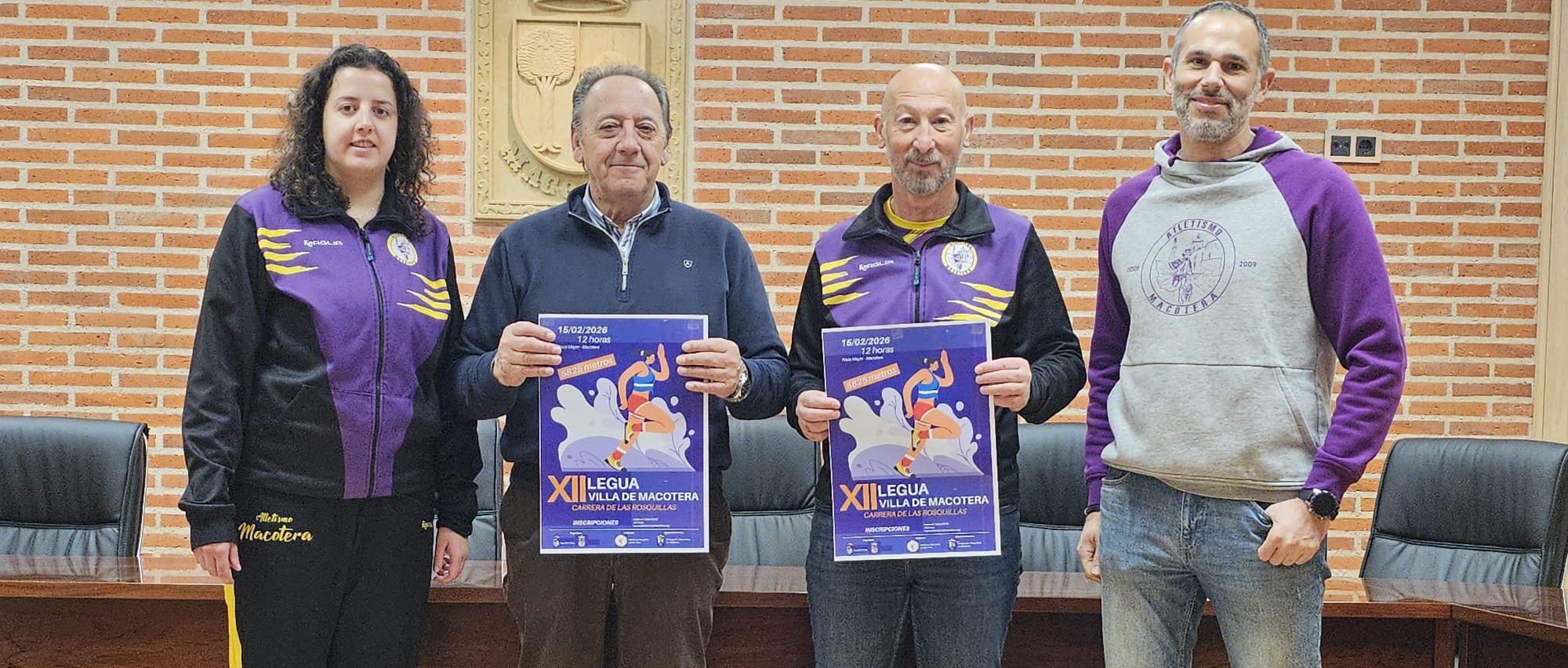 El alcalde de Macotera, Benjamín Madrid, la concejala Sara Antona y el presidente del club de atletismo Macotera-Jamón Prim, Juan Antonio Bueno, han presentado esta mediodía la XII edición de la Legua Macoterana, conocida popularmente como la Carrera de las Rosquillas y que regresará a la villa el 15 de febrero, domingo. Los participantes se enfrentarán a un recorrido de 5.825 metros que partirá de la plaza Mayor a las 12:00 horas y discurrirá, también, por varios caminos del término municipal para volver, de nuevo, a la plaza donde la organización obsequiará a los atletas con bebida, fruta, caldo caliente y por supuesto, rosquillas caseras.