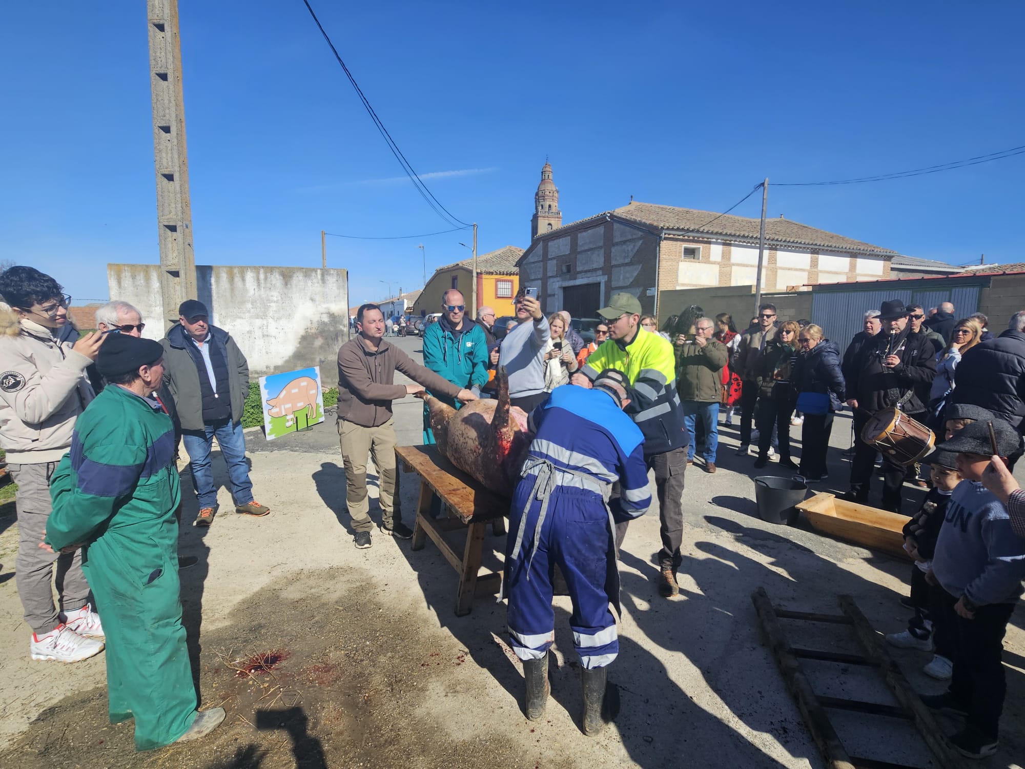 El esperado sol anima la matanza en Palaciosrubios con un gran ambiente y hasta con lanzamiento de boina para los «peques»