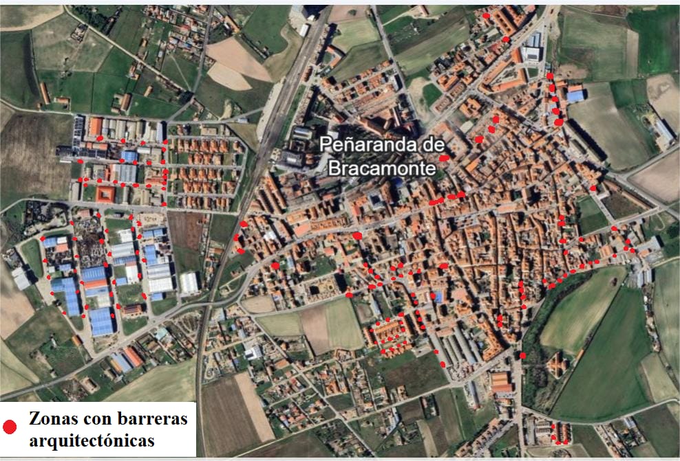 PeC elabora un mapa de Peñaranda con la localización de una «multitud» de obstáculos situados en la vía pública