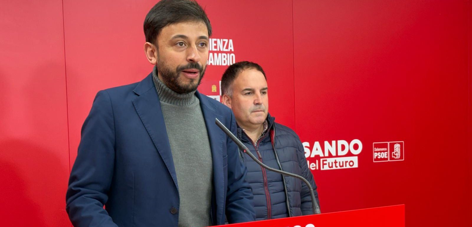 El candidato socialista ha anunciado en rueda de prensa, junto al también candidato y alcalde de Saelices el Chico, Fran Bernal, la necesidad de acabar con las desigualdades territoriales que existen en la Comunidad y también en Salamanca en materia industrial.