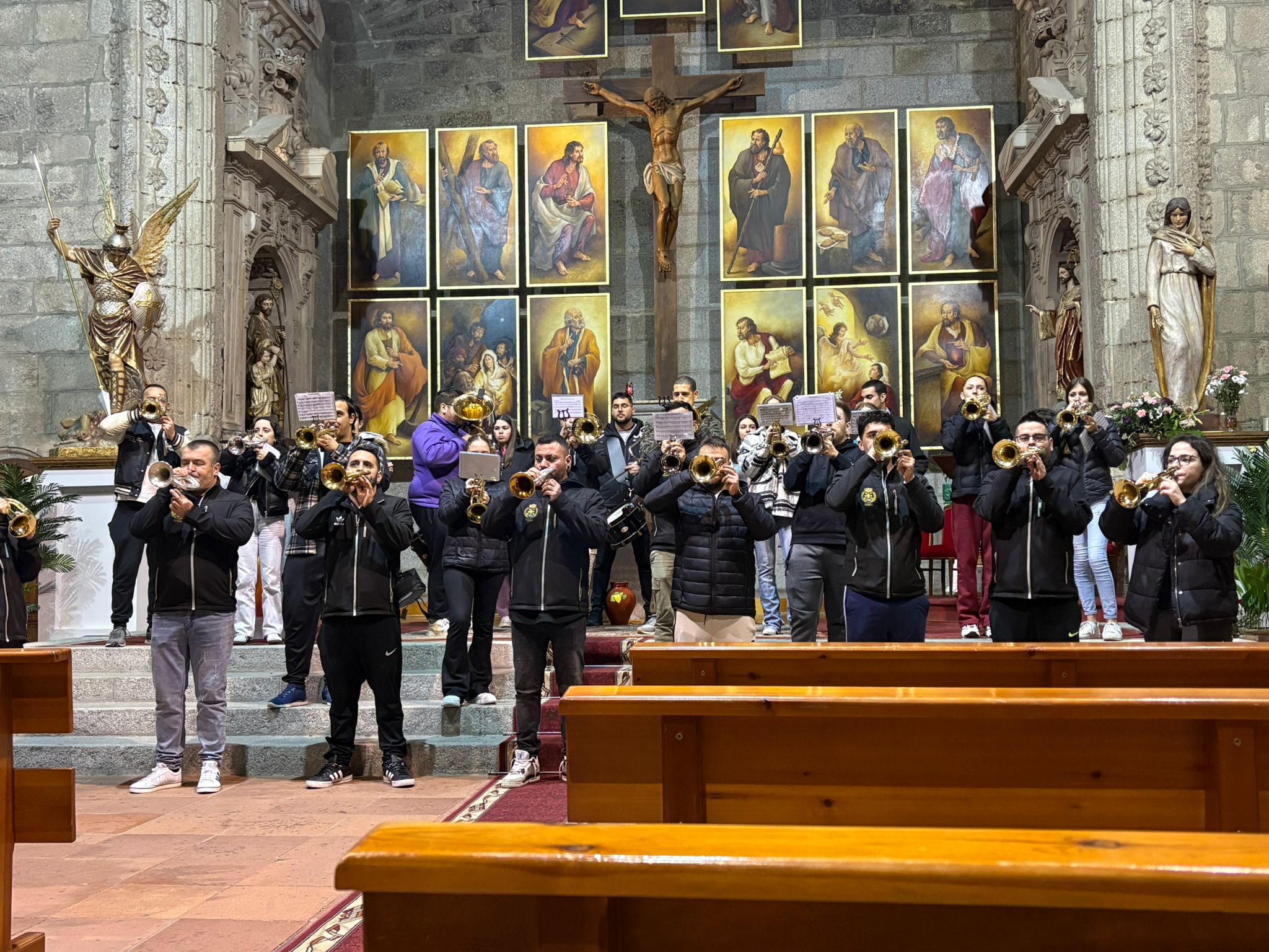 La parroquia fue escenario en la tarde noche de ayer del último ensayo previo a la III edición de «Peñaranda de Pasión» que traerá mañana a la localidad un gran evento de música cofrade organizado por la banda de cornetas y tambores peñarandina. A las 17:00 horas tendrá lugar un pasacalles desde la iglesia convento de las Carmelitas hasta la iglesia parroquial de San Miguel Arcángel donde la mencionada banda de cornetas y tambores de la Hermandad de Cofradías de la Semana Santa peñarandina y la Félix Martín, de Segovia, ofrecerán un concierto a partir de las 17:30 horas. La entrada será libre y gratuita.