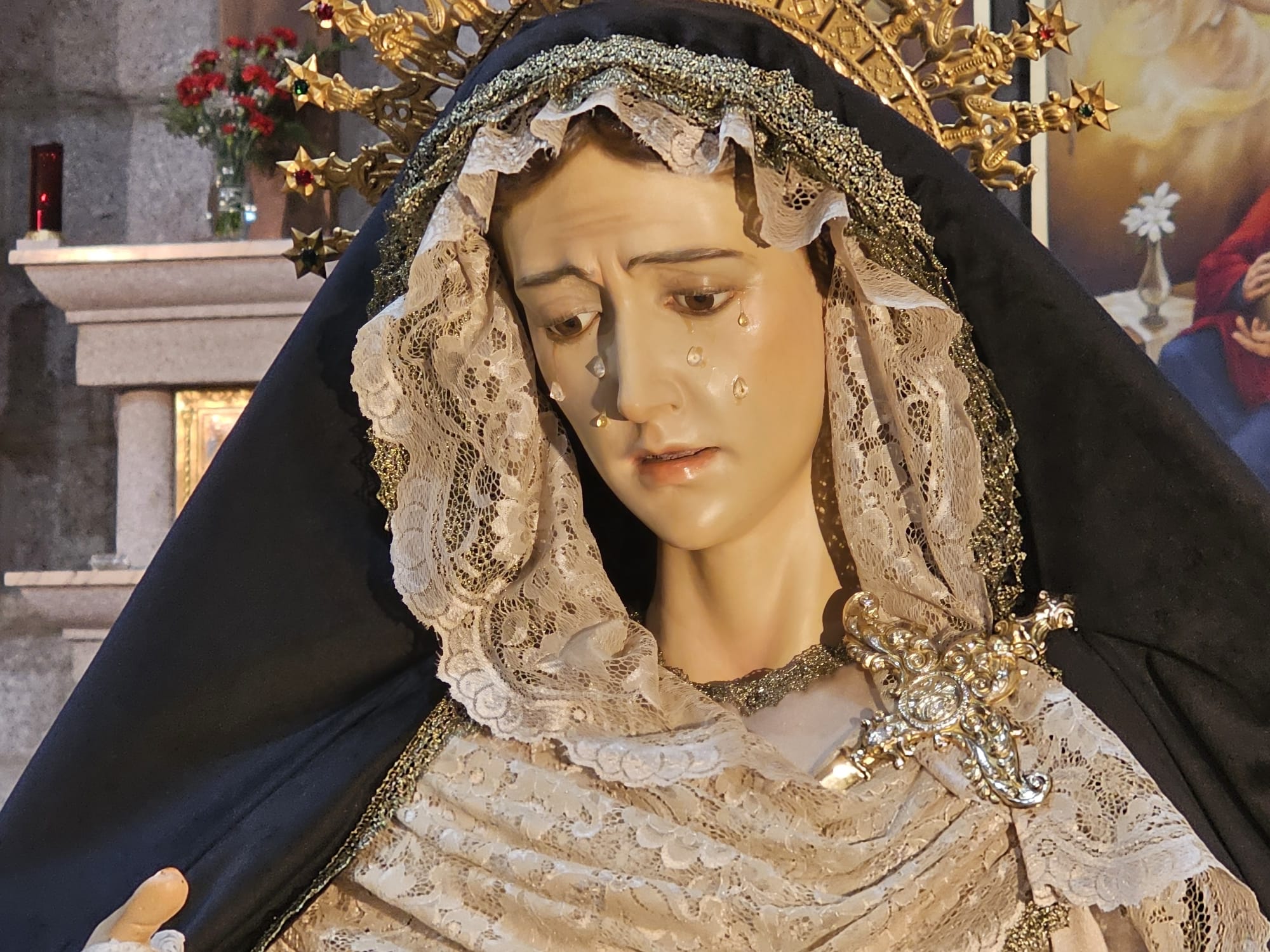 El sábado, de 11:00 a 14:00 y de 16:00 a 20:00 horas, la imagen de la Virgen de la Soledad permanecerá expuesta en el presbiterio de la iglesia parroquial para el besamanos que antecede a su fiesta anual del domingo, día 15, con la solemne misa a las 13:00 horas.