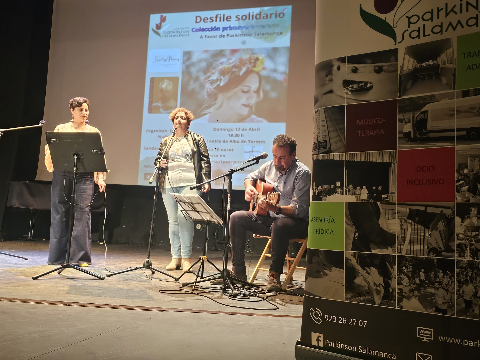 El grupo musical Arena, de Peñaranda, ha sido esta tarde el encargado de abril el desfile solidario a favor de la asociación Parkinson Salamanca que ha tenido como escenario el teatro de Alba de Tormes. El evento, organizado por Beatriz Núñez y Sandevy Pelukeros, ha recaudado donativos para dicha asociación en una tarde donde, además, de la música han desfilado varias modelos luciendo peinados y complementos de cabello de la colección primavera-verano. La presidenta de Parkinson Salamanca, Teresa Martín Sánchez, ha explicado al público la labor de Parkinson Salamanca con pacientes y familias y ha destacado la importancia de este tipo de iniciativas solidarias para dar visibilidad a la enfermedad y a la asociación. Desfile, sorteos y un picoteo han completado la tarde.