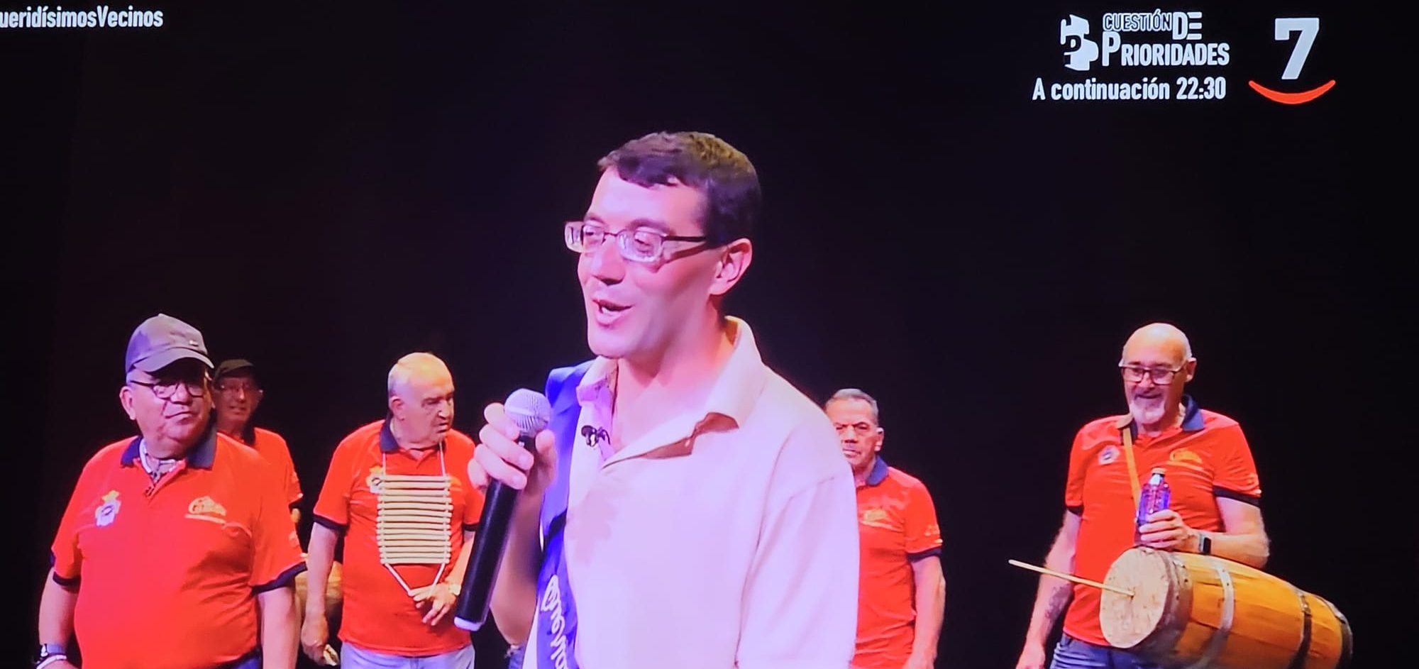 La 7 de Castilla y León ha emitido hoy, martes, el programa «Queridísimos vecinos» que se grabó en verano en Peñaranda y que tuvo como gran protagonista a José María Poveda Rodríguez, conocido popularmente como «Chemita». Cientos de peñarandinos han seguido atentamente el espacio desde las 21:30 horas y en el que ha quedado, más que demostrado, su elección popular como el vecino más querido de la localidad. Su trabajo como electricista del Ayuntamiento, su labor como monaguillo y catequista en la parroquia desde hace más de dos décadas, su carácter afable y alegre, su disponibilidad absoluta a la hora de ayudar a los demás han quedado plasmados en el programa de la 7 de Castilla y León. No ha faltado en este «Queridísimos vecinos» la sorpresa final en el teatro Calderón con la comparsa peñarandina, la familia, amigos y compañeros de Chemita brindándole una intensa y emotiva ovación en señal de gratitud y reconocimiento a una persona que es «un tesoro», como le ha calificado el párroco, Lauren Sevillano. «Mi gran noche», la canción que Chemita siempre canta, ha puesto el broche a un «Queridísimos vecinos» que también ha sido una bonita carta de presentación de Peñaranda y su gente.